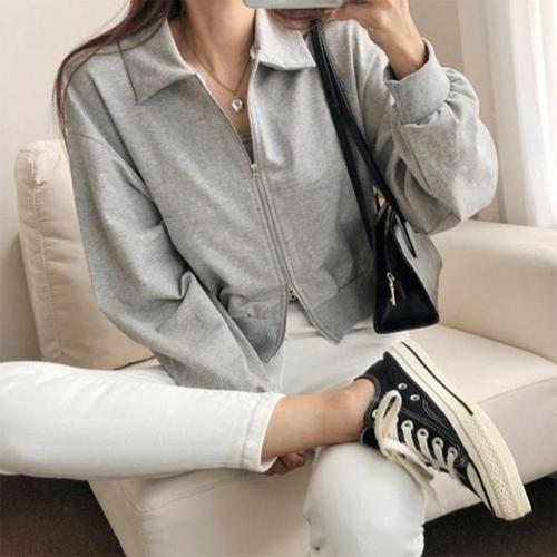 여성용 캐주얼 후드 맨투맨, Y2K 집업 후드, 단색 하라주쿠 긴팔 셔츠, 오버사이즈 크롭탑, 여성 루즈 재킷 코트