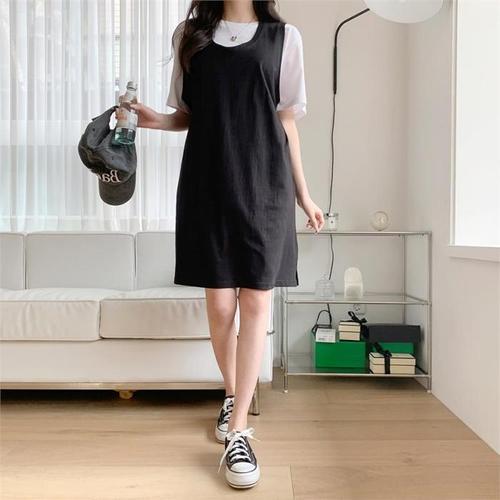 [다잇템]여자 일자 캐쥬얼 무지 원피스 (8255575A)