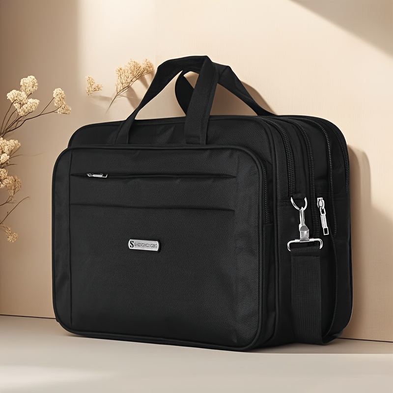 TEMU 16인치 노트북 가방 - 내구성이 뛰어난 옥스포드 직물, 확장 가능한 저장 공간, 조절 가능한 어깨끈, 지퍼 잠금, 노트북용 공간, 블랙, 작업이나 여행에 완벽한 노트북 가방