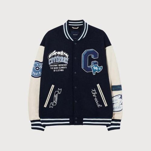 [커버낫]커버낫자켓 CQK CO2403JK07-NA 컬리지 C 울 바시티 네이비
