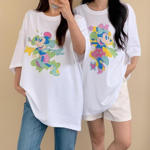 |CST9452|남녀 커플 오버핏 프린트 흰색 반팔 티셔츠