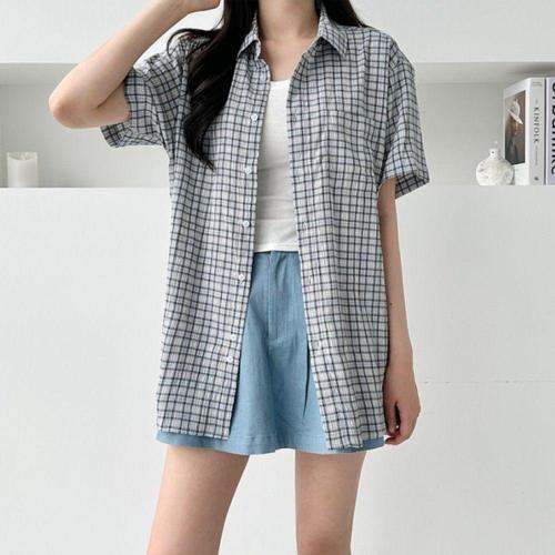[셀럽하우스]남여공용 EUTM9209 체크무늬 커플아이탬 남방 셔츠 데일리룩