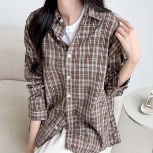 [셀럽하우스]체크남방셔츠 RIOJ8645 커플남방 긴팔셔츠 데일리룩 가을봄셔츠