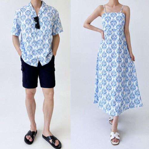 [오너클랜]인기상품 커플 에스닉 비치 웨어 해변룩 신혼 원피스 커플룩 [WFC1343_260203]