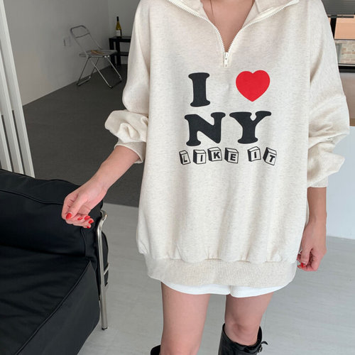 에르디테 / 에르디테 42 반집업 프린팅 카라 루즈 오버 핏 맨투맨 커플 티셔츠 3컬러
