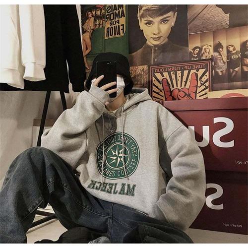 헤비웨이트 플리스 후드티 남성용 봄 가을 그레이 커플 오버사이즈 아메리칸 트렌디 브랜드 자켓 탑 레터 프린트 캐주얼 스웨트셔츠