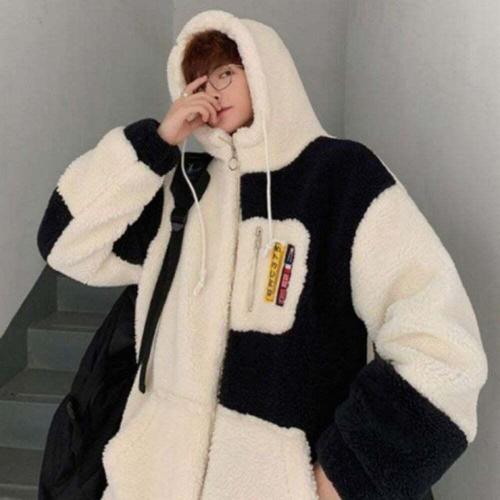 [셀럽하우스]남성 VKXY7085 방한 뽀글이 스타일 후드 플리스 집업 커플 패션