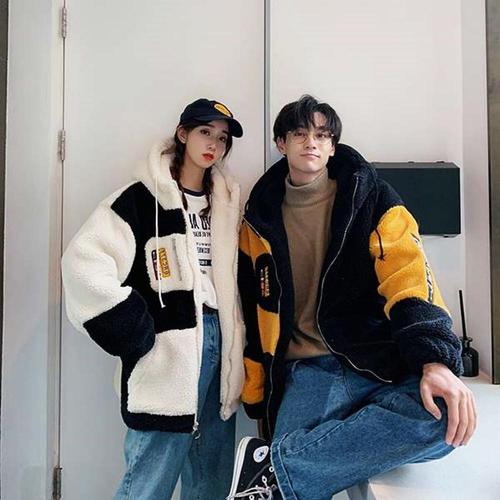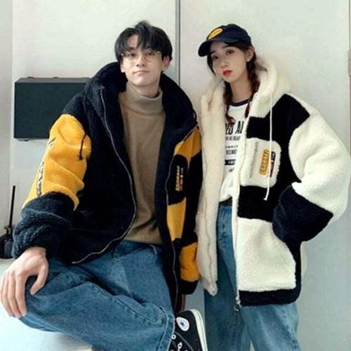 JUSTFEELING 커플룩 남여공용 뽀글이자켓 하이넥 램스울코트 루즈핏 바람막이 보온 방한 외출복 가을겨울 후리스코트 점퍼 M-3XL