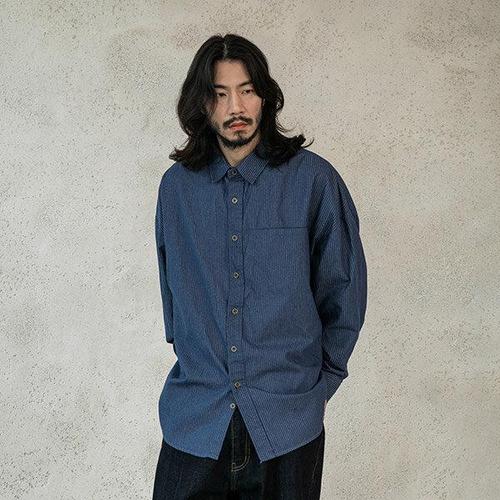 [러기드하우스]러기드하우스 핀스트라이프 오버핏 데님셔츠 2컬러