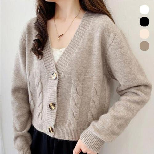 꽈배기 브이넥 2컬러 베이직 여성 니트 가디건 LK-G012