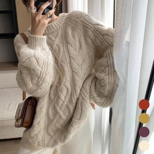 [다잇템]여자 4컬러 스웨터 꽈배기 두툼 U넥 FW 티셔츠 (10646679A)