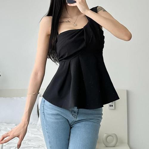 [다잇템]여자 3컬러 트위스트 언발란스 후레아 블라우스 (10635406A)