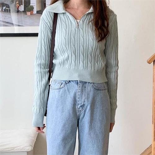 [다잇템]여자 카라 포인트 4컬러 롱슬리브 꽈배기 니트 (10078125A)