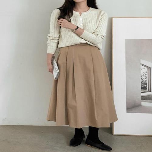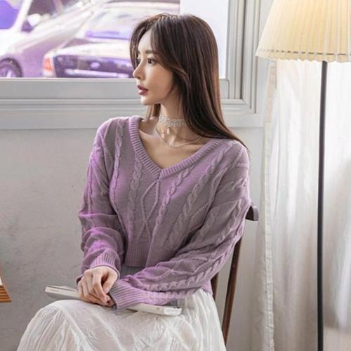 [옷은날개] 여성 5컬러 브이넥 버킷 크롭기장 꽈배기니트 스웨터