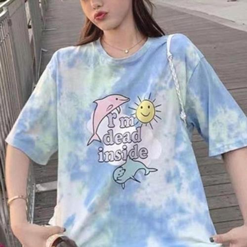 [엄지척]롱 반팔 데일리 돌핀캐릭터 여성티셔츠 여자반팔티 여_19599567_667501