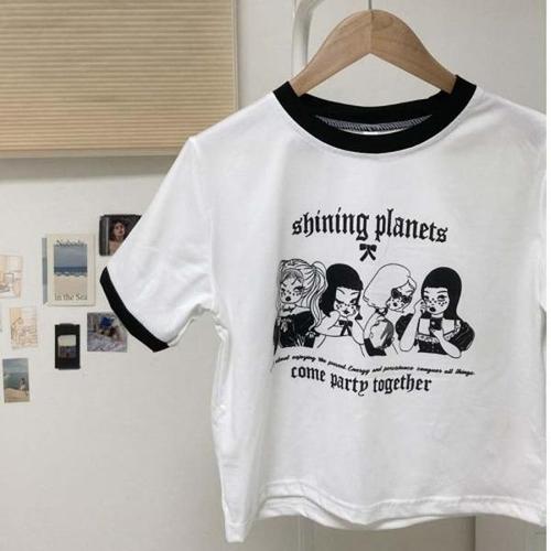 [엄지척]여름 여자 캐릭터 배색 프린팅 크롭티 반팔 티셔츠_19556652_667501