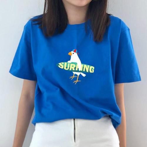 [험블스튜디오][험블스튜디오] 오버핏 프린트 서핑버드 캐릭터 로고 라운드넥 반팔티 블루 (5122736)