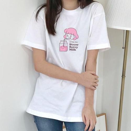 [험블스튜디오][험블스튜디오] 밀크 캐릭터티 루즈핏 기본티 라운드넥 여성여름반팔티 화이트 (5084076)