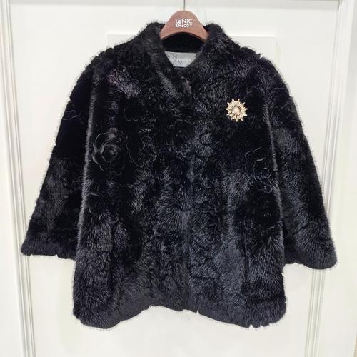 [르니앤맥코이]르니앤맥코이 보석단추 꽃 프릴패턴 망또 퍼자켓 MM12MJ701_GN