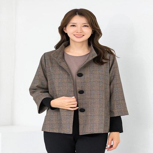 [모슬린]엄마옷 하이넥 체크 망토 정장자켓 MQG125239 마담 미시 중년여성 빅사이즈 할머니옷 50대 60대 ..