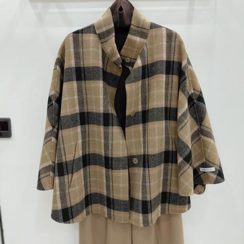[모슬린]엄마옷 울모직 카라 체크 정장 망토자켓 511FGH004 마담중년여성빅사이즈50대60대
