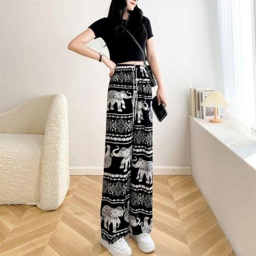 [오너클랜]인기상품 여성 여름 밴딩 통바지 코끼리 무늬 쿨링 팬츠 여행 휴양지 바지 [WFLL9FB_260304]