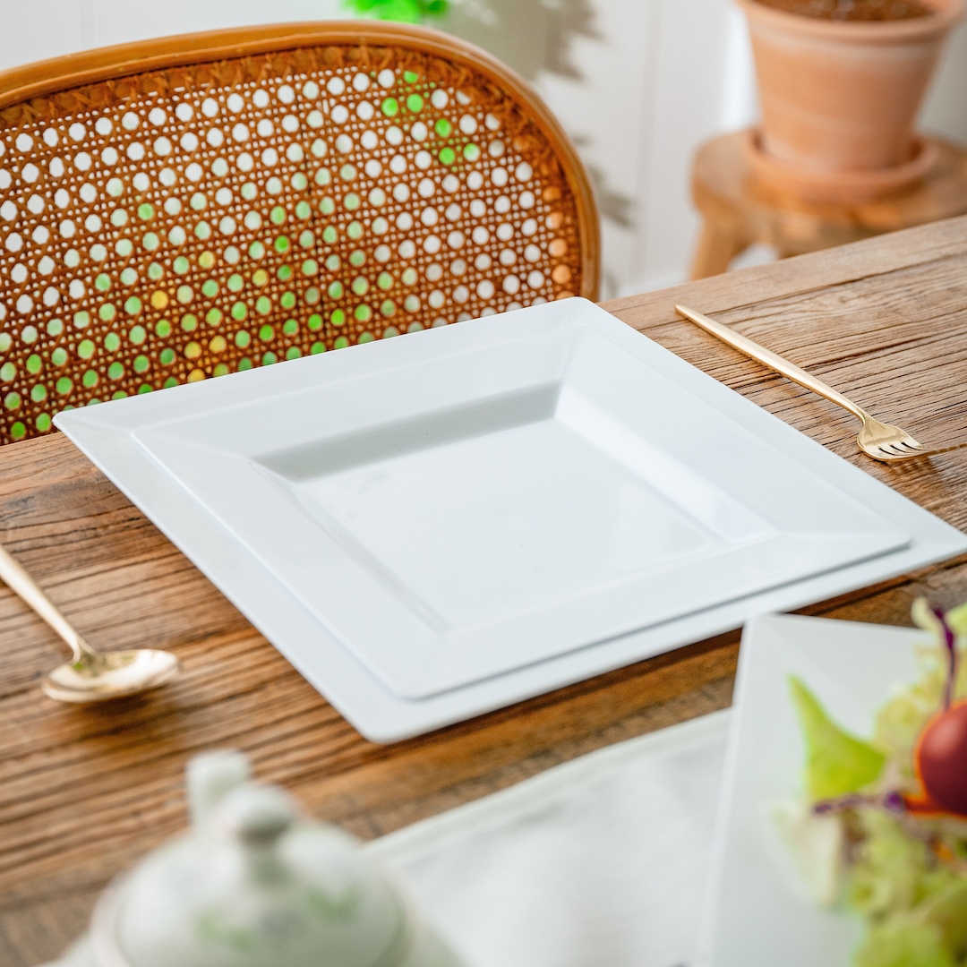 미니멀 화이트 일회용 플라스틱 사각 접시 그릇 27cm 18pcs