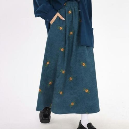 [신상오픈런]여성용 따뜻한 가을 겨울 코듀로이 플라워 롱 스커트 (46120055)