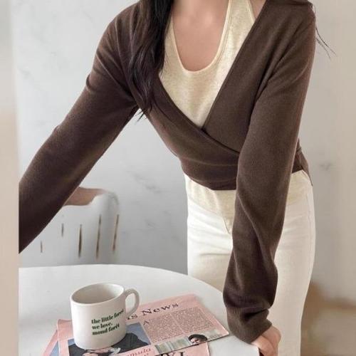 [다잇템][다잇템] 여성 울혼합 랩 홀터네크 코디 카디건 세트_23359577_588872