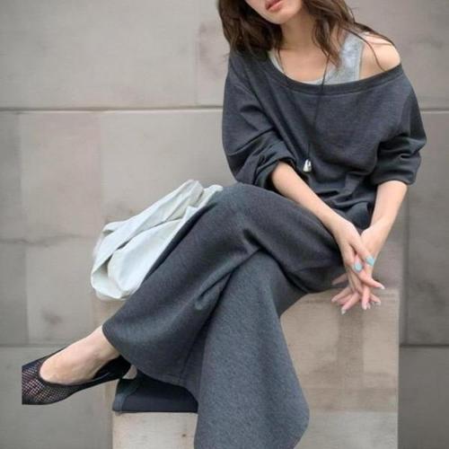 [다잇템][다잇템] 여성 코디 롱슬리브티 어깨끈 드레스 롱 하이넥 세트_23470971_588872