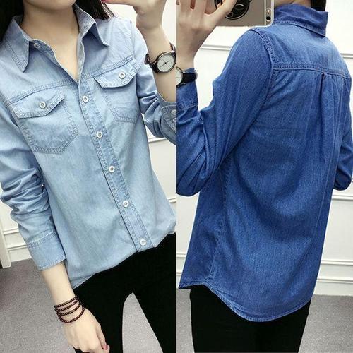 [모노무드]LMO 우먼 데일리 코디캐쥬얼 청 와이셔츠 노멀 블루진 상의 데일리룩 블라우스