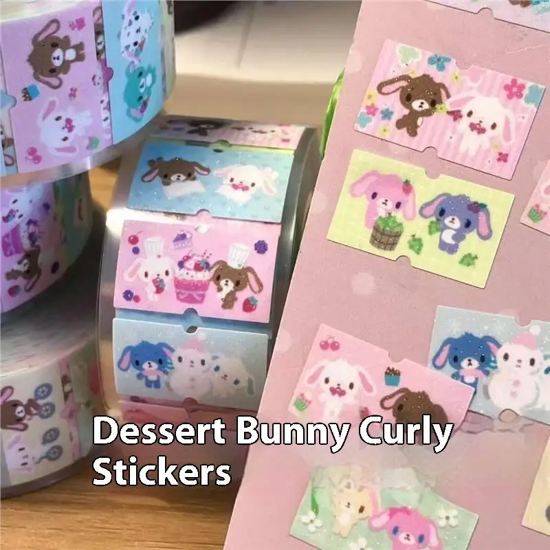 500팩 스티커 롤 – 노트북 및 장식용 사랑스러운 카와이 설탕 토끼 라벨