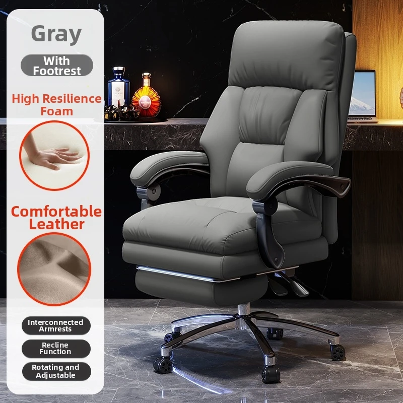 넓은 PU 가죽 시트가 있는 사무용 의자 인체공학적 임원용 컴퓨터 책상 의자 조절 가능한 요추 지지대 발받침 포함
