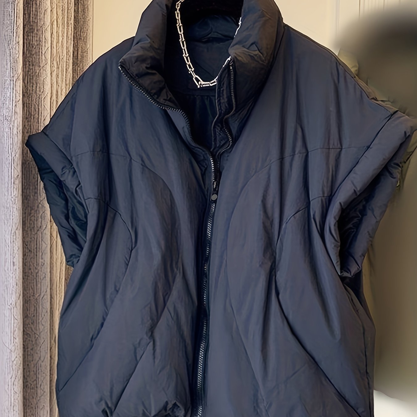 TEMU 가을/겨울 여성용 루즈핏 패딩 조끼 코트 (지퍼 & 드로스트링)