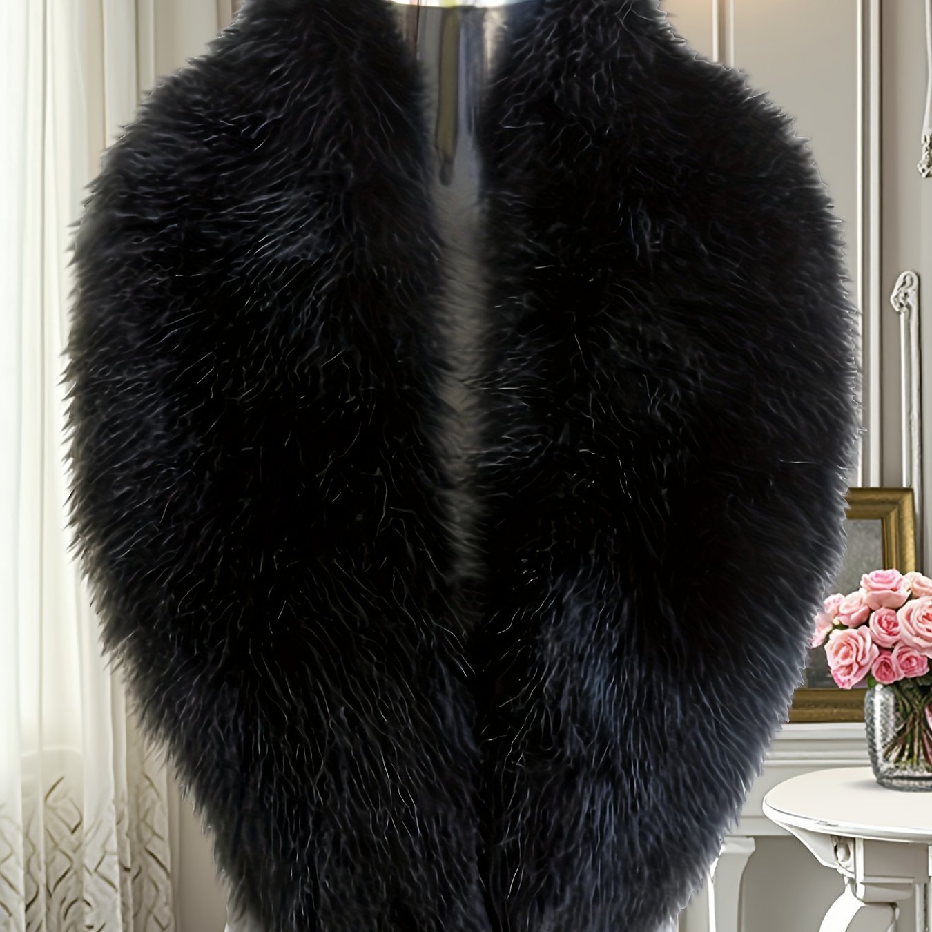 TEMU 플러스 사이즈, 고품질 인조 퍼 칼라 우아한 방풍 보온 조끼 쇼울 가을 겨울용
