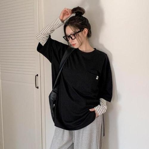 [다잇템][다잇템] 여자 코지 박시핏 단가라 일상룩 티셔츠_24544427_588872