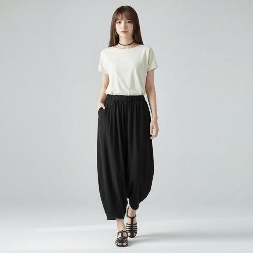 [다잇템][다잇템] 여자 코지 고무줄 클래식 벌룬핏 캐쥬얼 바지_24544295_588872