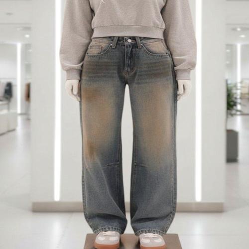 [비바앤코코넛]빈티지 오일워싱 빅사이즈 와이드 데님 팬츠 바지