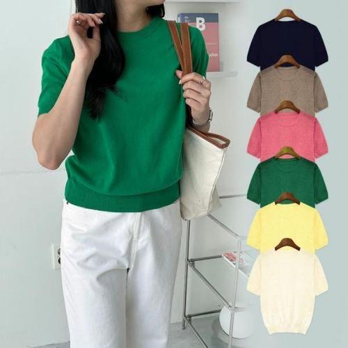 [에이치플러스몰]라운드 여성 코튼 데이린 반팔 니트