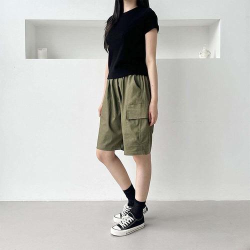 [유야]여성 무지 면 밴딩 카고 반바지 -FPN0081- 여름
