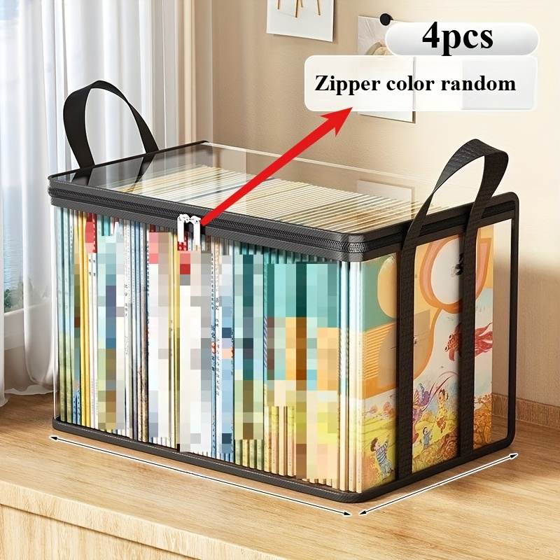 TEMU 4개입 고강도 투명 보관 상자 (플립형 뚜껑 포함) - 대형 직사각형 정리함, 공간 절약형 디자인 (책, 의류, 사무실, 가정용)