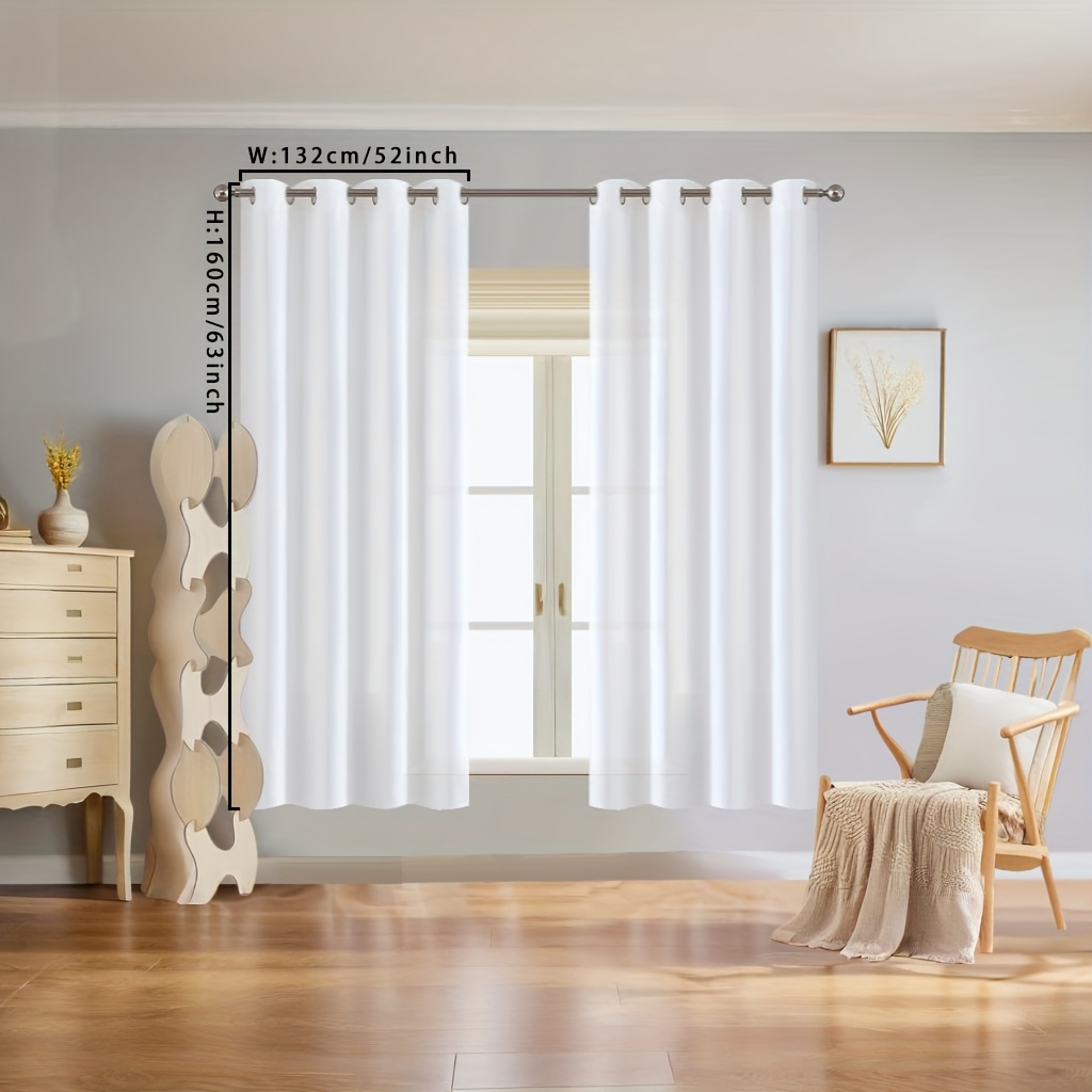 TEMU 2개 세트 화이트 필터링 커튼 - 메탈 링 포함, 반투명 프라이버시 패널, 거실/침실/사무실용 창문 커튼 - 쉬운 설치 모던 홈 데코, 스타일, 시스루 원단, 홈 장식