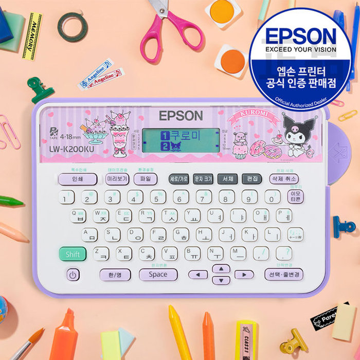 엡손 LW-K200KU 정품 네이머 산리오 쿠로미 휴대용 라벨 프린터 네임스티커 테이프포함