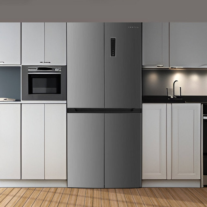 쿠잉 4도어 양문형냉장고 MD340 메탈실버 저소음 프리스탠딩