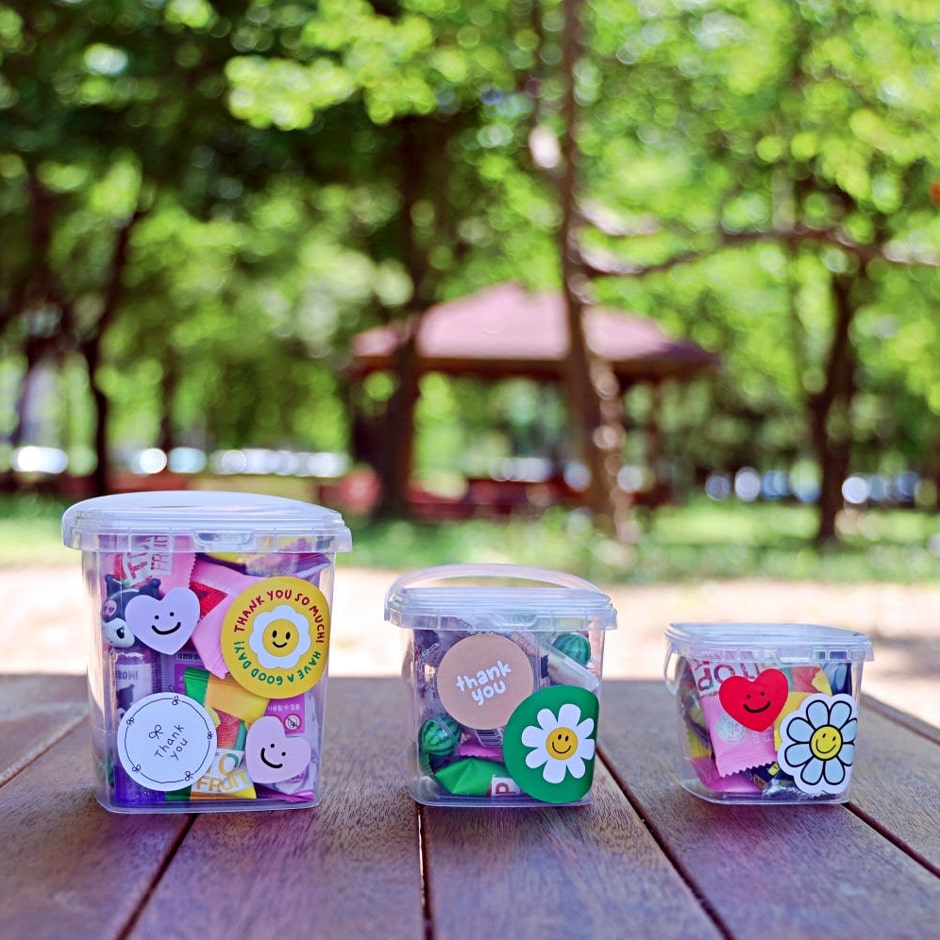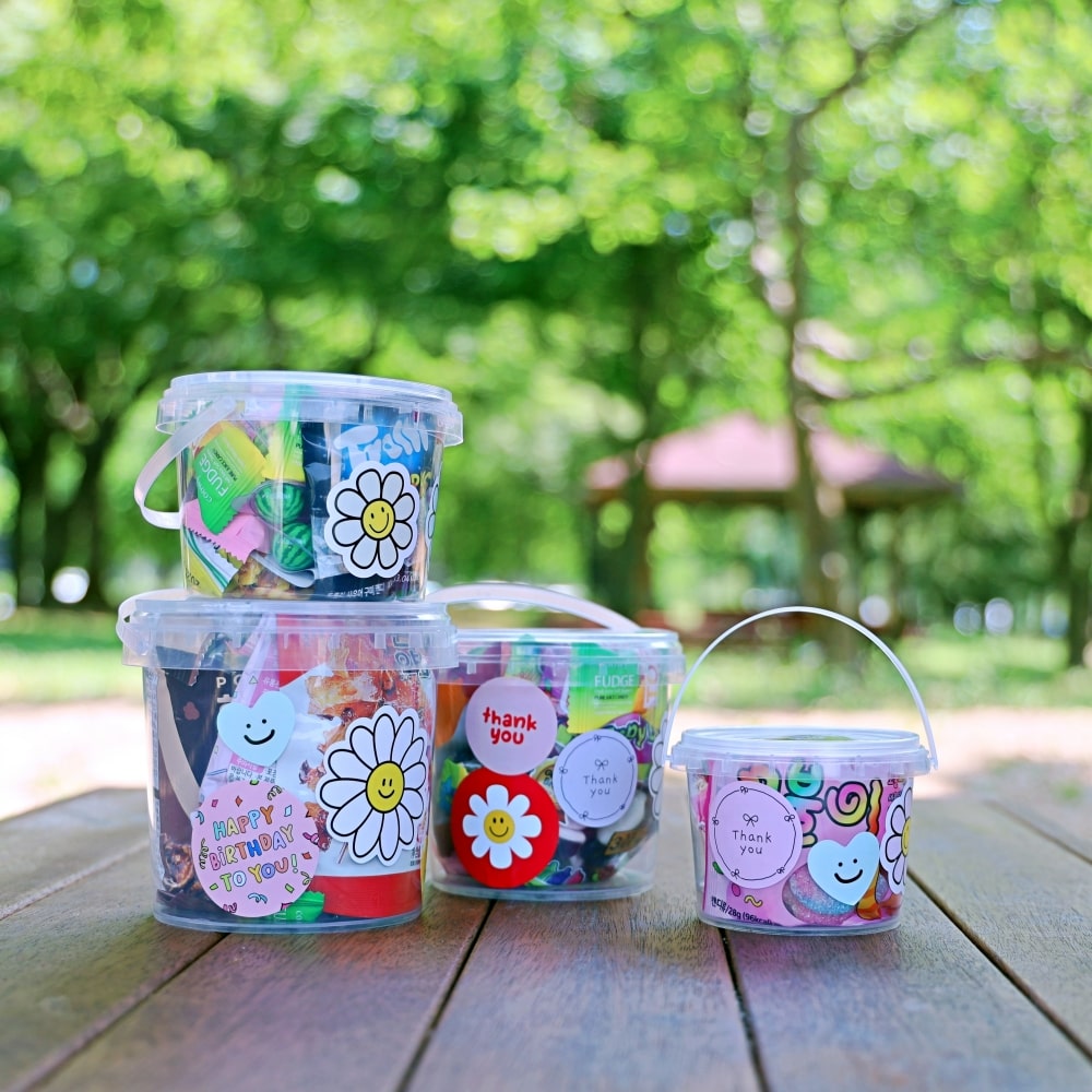 투명 원형 용기 쿠키통 365ml 플라스틱 포장 용기 슬라임통 간식통
