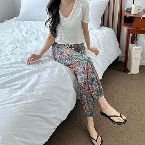 [오너클랜]인기상품 데일리 여성 조거 바지 오리엔탈 여자 밴딩 바지 여름 쿨링 [WFLJLJL_260302]