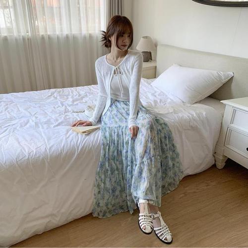 [다잇템]여성 SS 쿨링 꽃무늬 롱스커트