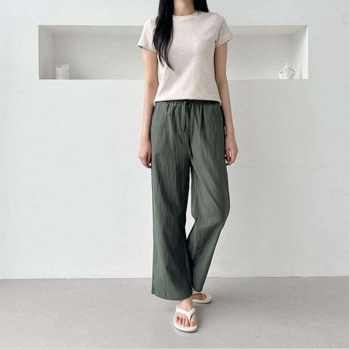 여름 쿨링 팬츠 여성 고무줄 밴딩 와이드 냉감 바지