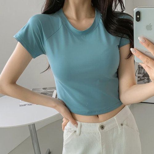 슬림핏 스판 크롭 반팔티 이너 라운드넥 탑 에어로쿨