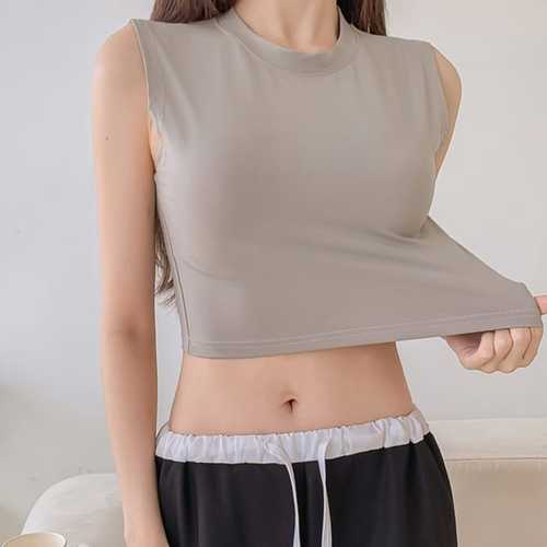 슬림핏 크롭 나시 이너 라운드넥 기능성 탑 에어로쿨